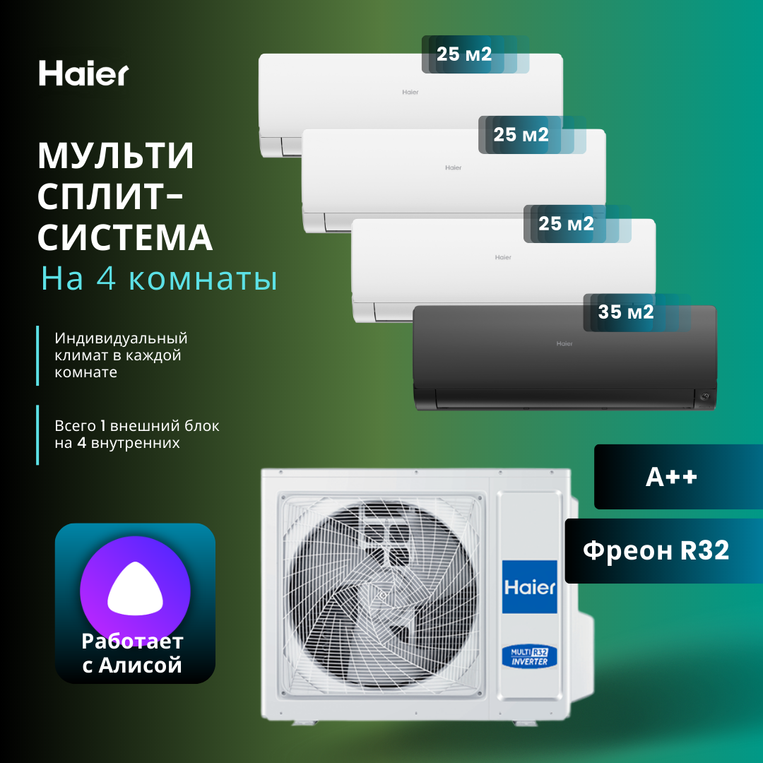 9732aadbceu05lvj Мульти сплит-система Haier 3 х AS25S2SF3FA-W + AS35S2SF2FA-B / 4U85S2SR5FA на 4 комнаты 25+25+25+35 м2 купить по низкой цене. Доставка по Москве и всей России!