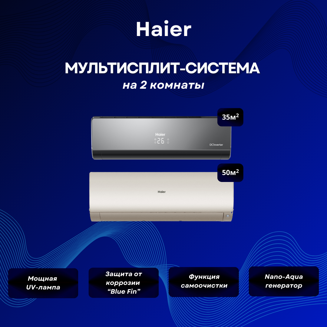 9732aadbceu05lvj Мульти сплит-система Haier AS12NS6ERA-B + AS50S2SF3FA-G / 2U50S2SM1FA-3 на 2 комнаты 35+50 м2 c Wi-Fi ESP32 купить по низкой цене. Доставка по Москве и всей России!