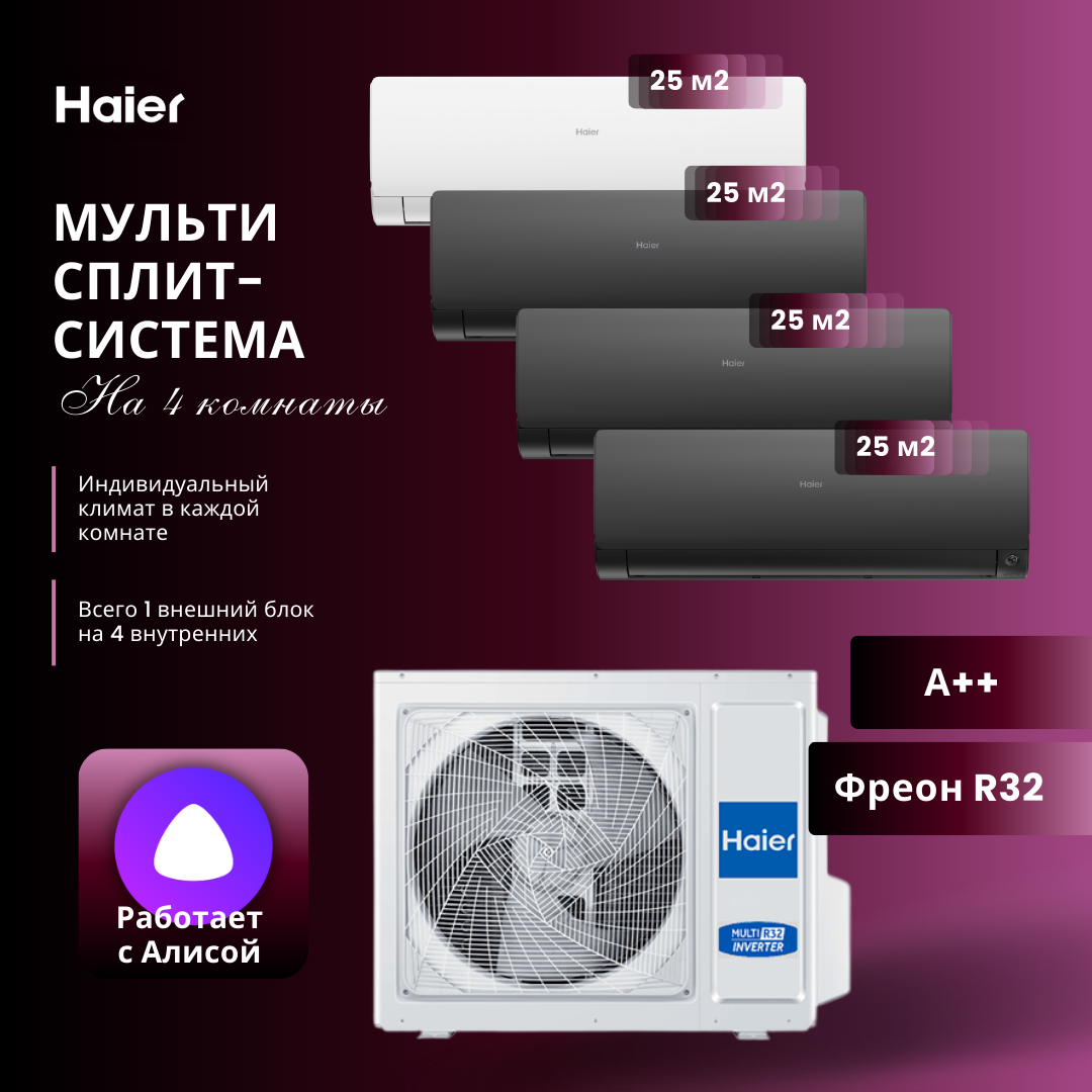 9732aadbceu05lvj Мульти сплит-система Haier AS25S2SF3FA-W + 3 х AS25S2SF2FA-B / 4U85S2SR5FA на 4 комнаты 25+25+25+25 м2 купить по низкой цене. Доставка по Москве и всей России!
