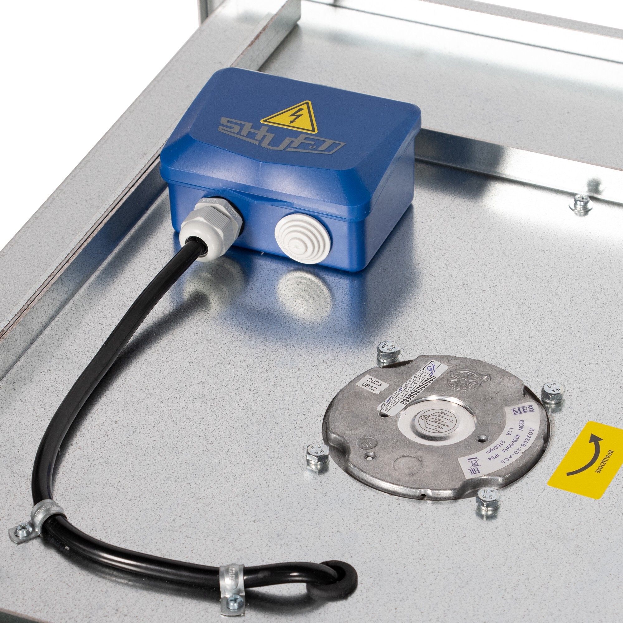 На корпусе вентиляторов находится клеммная коробка для подключения к электрической сети. Необходимо, чтобы подключение вентиляторов выполнял только квалифицированный персонал и в соответствии со схемой подключения.
