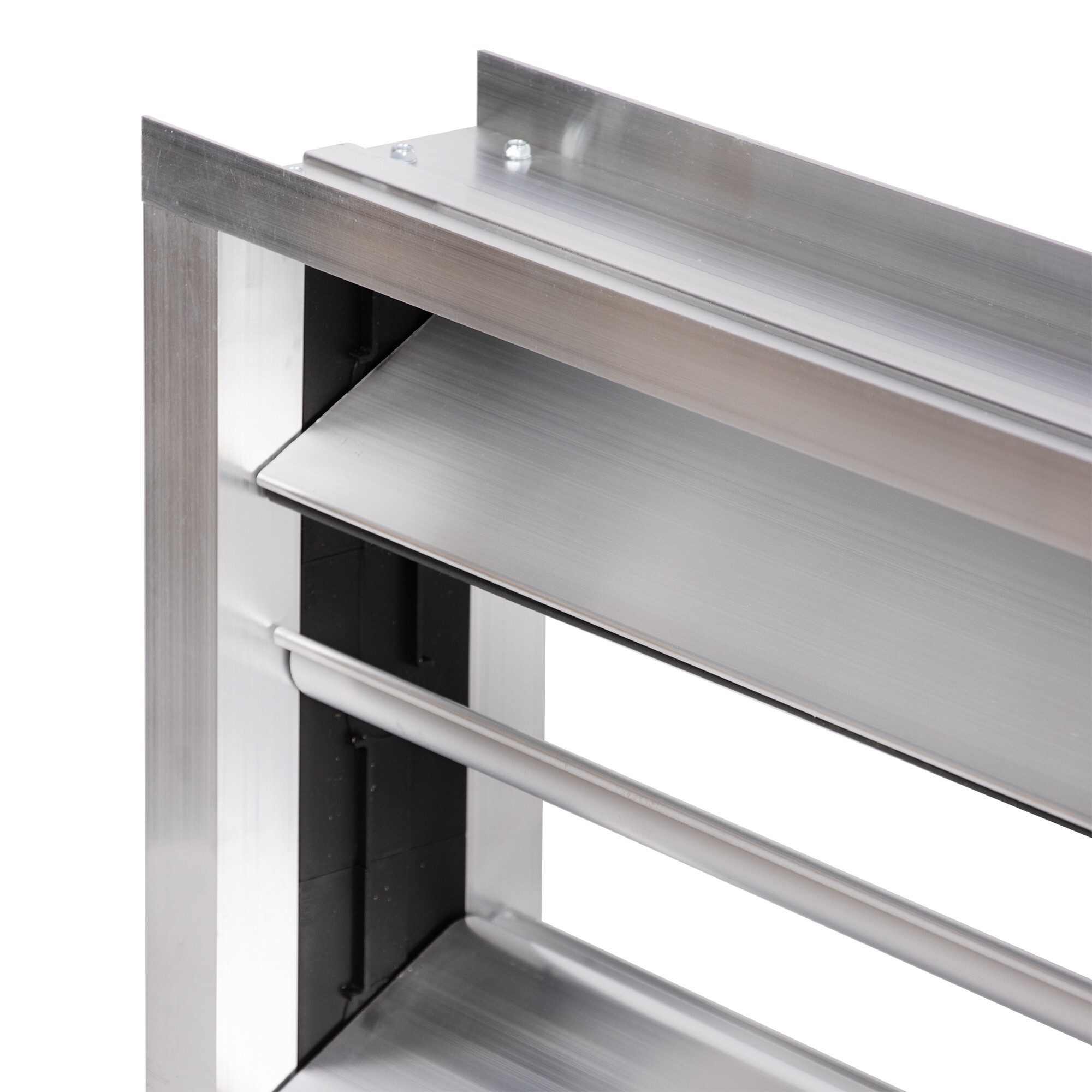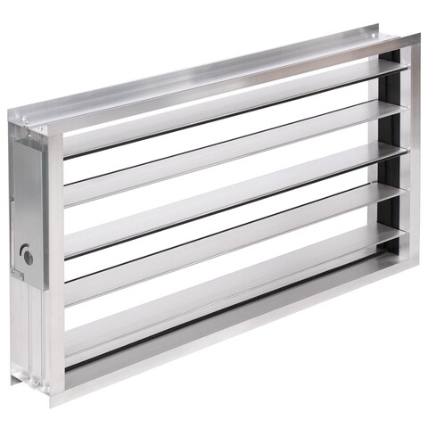 Корпус изготовлен из алюминиевого профиля со скрытыми шестернями. Лопатки из специального профиля с уплотнением. Площадка под электропривод с возможностью фиксации ручного привода (аксессуары) в неободимом положении.